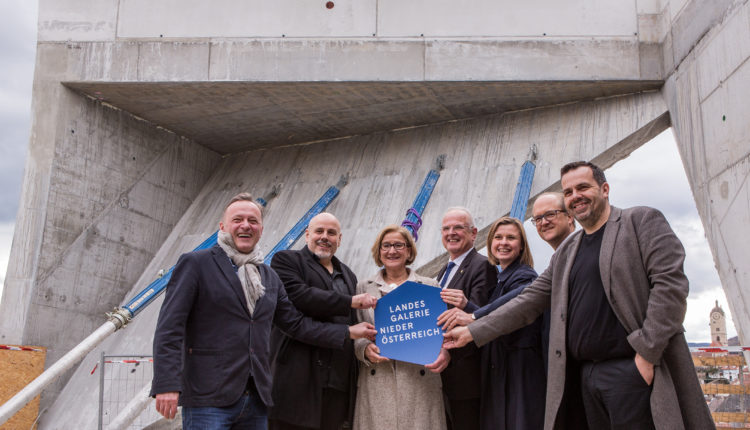 Im Juni 2016 erfolgte der Spatenstich. Im Jänner 2017 wurden archäologische Bodenfunde freigelegt. Jetzt wurde die Dachgleiche erreicht. Im ersten Halbjahr 2019 wird die Landesgalerie Niederösterreich eröffnet.