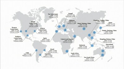 HJT-Produkte zeichnen sich grundsätzlich durch eine hohe Stromerzeugung aus. Risen Energy hat, wie in Abbildung 1 gezeigt, durch Simulationen in mehr als 20 Ländern und Regionen mit typischen klimatischen Umgebungen in aller Welt die Stromerzeugung von HJT-Hyperion-Modulen mit der Stromerzeugung durch PERC-Module und TOPCon-Module verglichen. Die Simulationsergebnisse zeigen, dass HJT-Module in verschiedenen Regionen im Vergleich zu TOPCon- und PERC-Modulen durchgängig deutlich mehr Energie erzeugt haben. Insbesondere in Hochtemperaturbereichen haben sie eine hervorragende Leistung bewiesen.